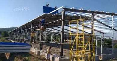 Jinggang a aidé un client en Roumanie à construire deux bâtiments à ossature à pignon pour une usine de verre, d'une superficie totale de 4 200㎡.